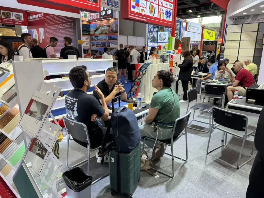 開幕首日,合作多年的戰(zhàn)略合作伙伴與初次到訪的潛力客戶齊聚展位。吊頂板材展位采用“經(jīng)典傳承”與“創(chuàng)新突破”雙線并行的展示策略,不僅彰顯了成熟產(chǎn)品體系深厚的技術(shù)底蘊(yùn),更全方位呈現(xiàn)了前沿設(shè)計理念的創(chuàng)新實踐。