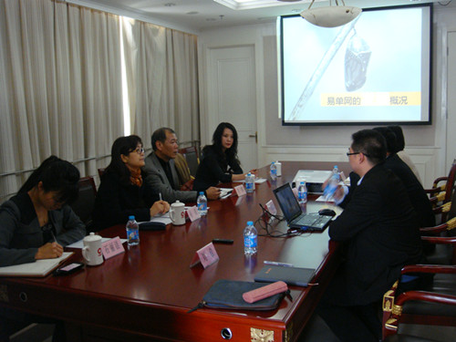 2013年3月25日下午,中國建材集團(tuán)總經(jīng)理助理兼國際合作部總經(jīng)理衛(wèi)鋒、國際合作部副總經(jīng)理孫嵐等一行赴中建材國際貿(mào)易公司調(diào)研易單網(wǎng)工作,并探討集團(tuán)內(nèi)企業(yè)如何利用易單網(wǎng)擴(kuò)大出口合作等事宜。